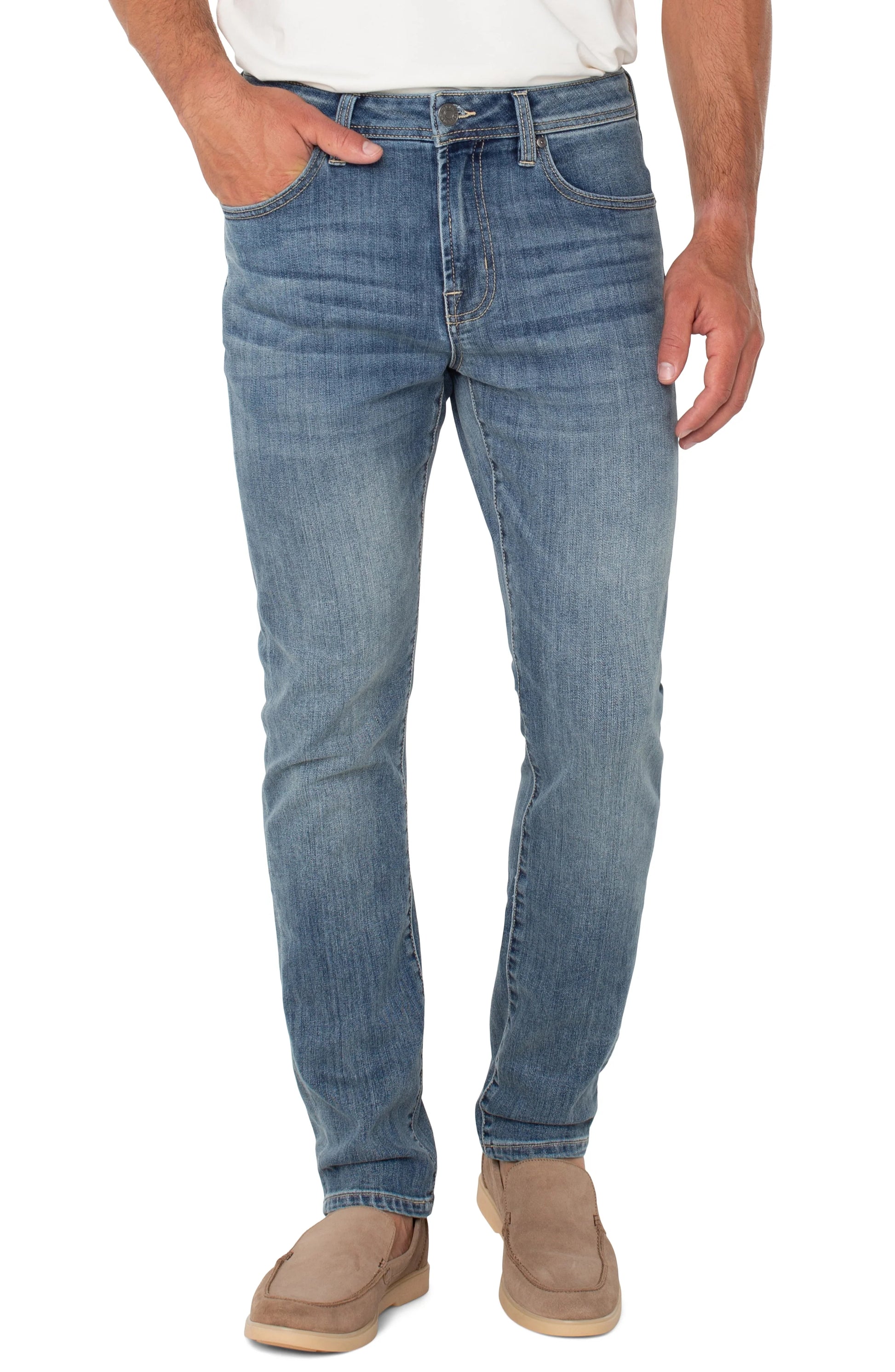 Our modern straight is super comfortable with amazing stretch. Perfectly balanced and offered in 3 inseams, this style feels like you've received a custom fit. Designed using new laser techniques and processes that give the "Liverpool Look" and uses a fraction of our natural resources.